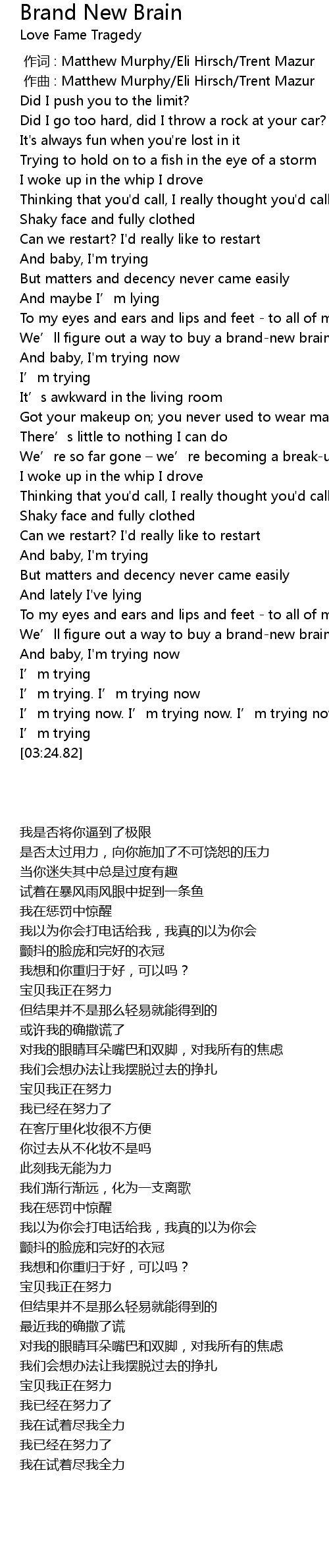 | [00:00.00] | zuò cí : Matthew Murphy Eli Hirsch Trent Mazur |