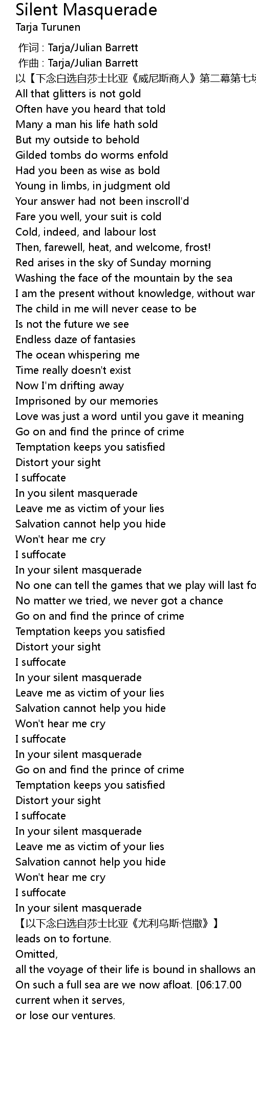 | [03:16.80] | In you silent masquerade |