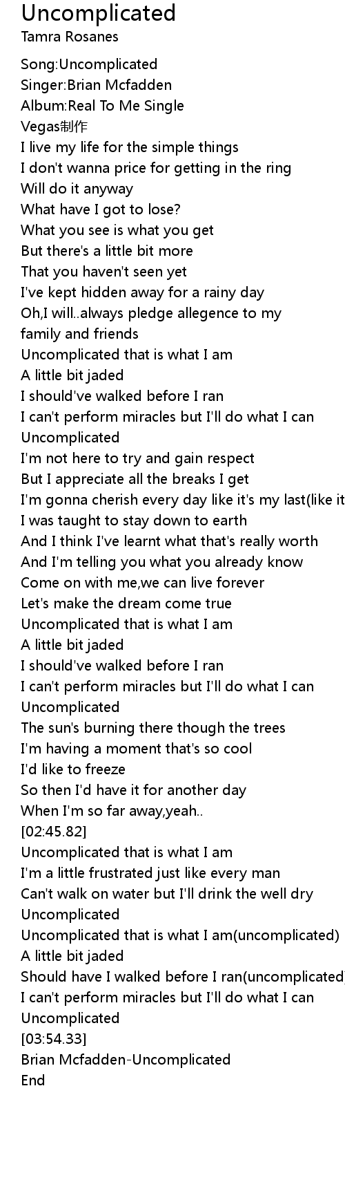 | [00:00.47] | Song: Uncomplicated |