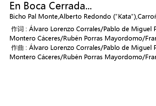 | [00:00.00-1] | 作词 : Álvaro Lorenzo Corrales/Pablo de Miguel Pérez/Félix Montero Cáceres/Rubén Porras Mayordomo/Francisco Hernández Muñoz |
