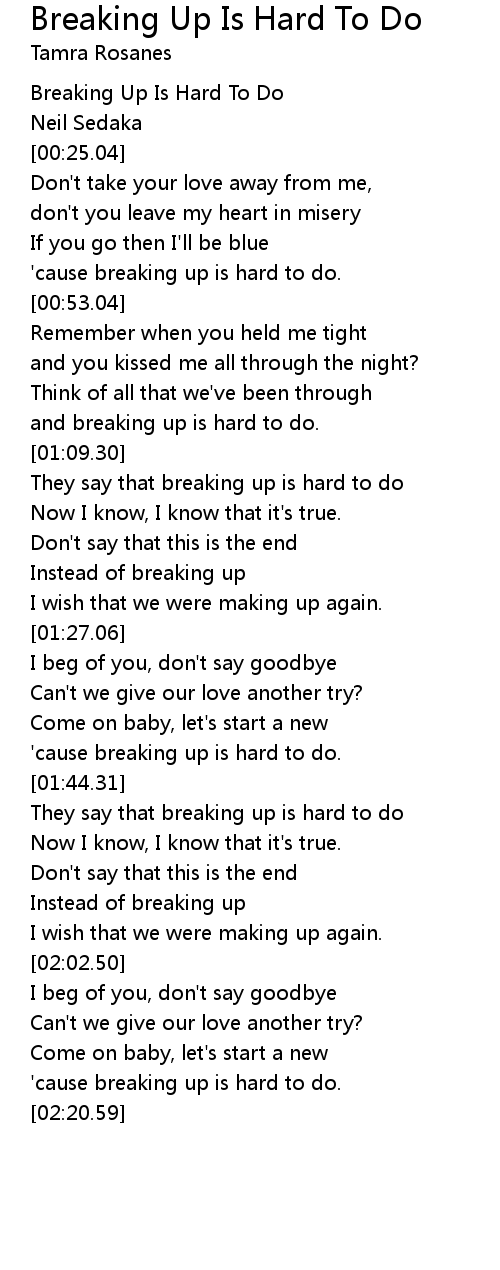 'cause breaking up is hard to do. |