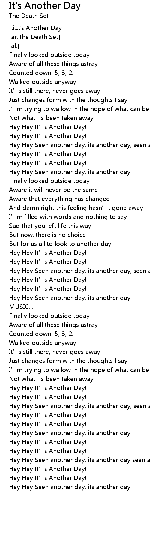 | [00:47.10] | Hey Hey Seen another day, its another day |