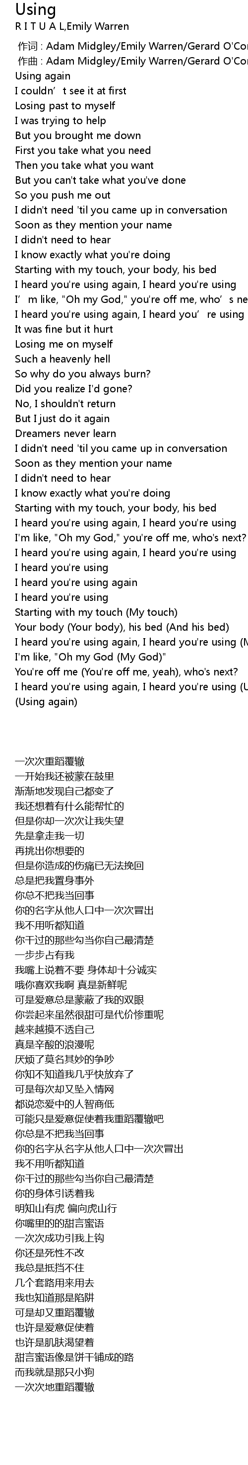| [02:52.21] | I heard you're using again, I heard you're using (Using again) |