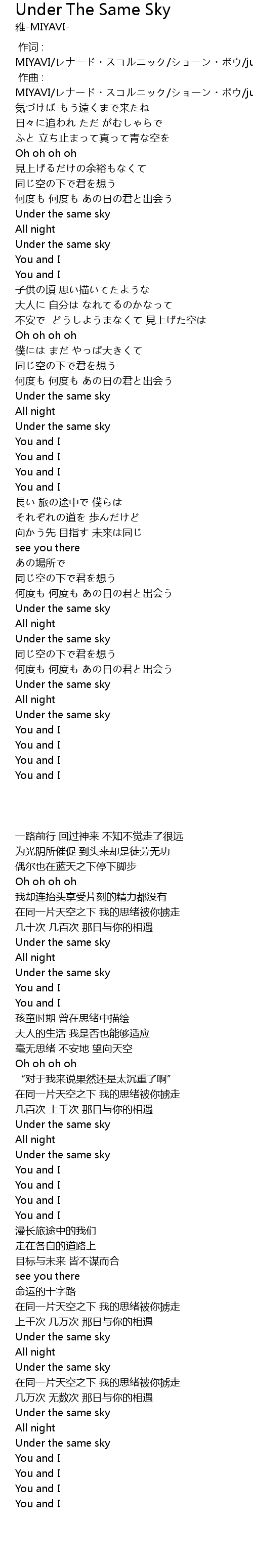 | [00:44.57] | Under the same sky |