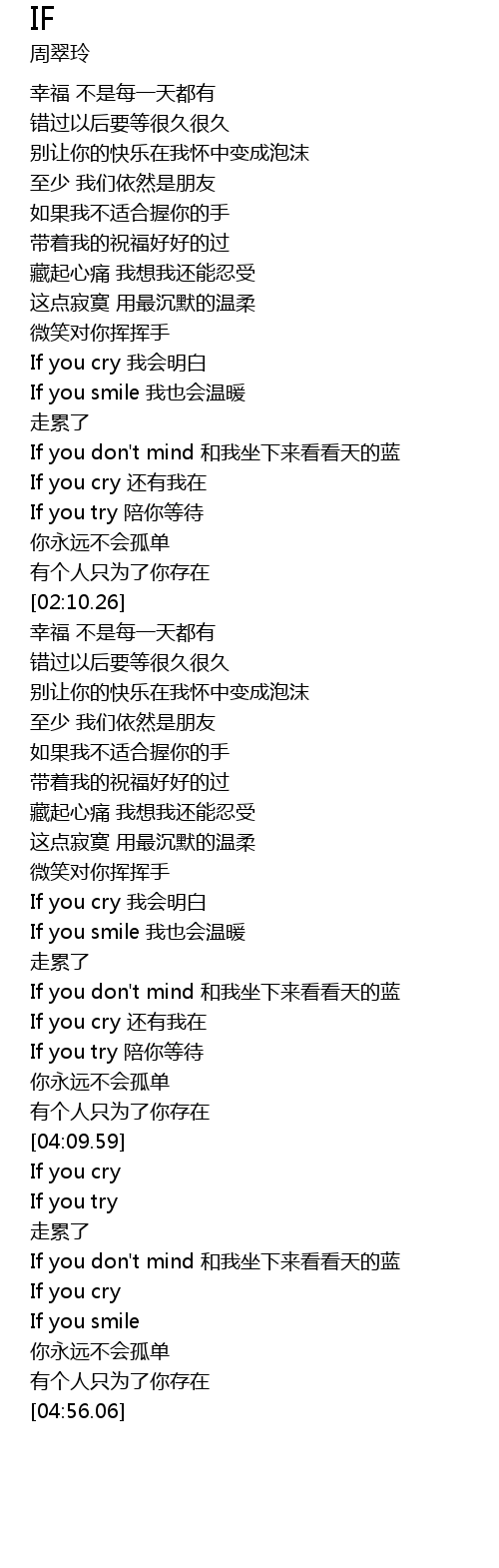 | [04:32.65] | If you cry |