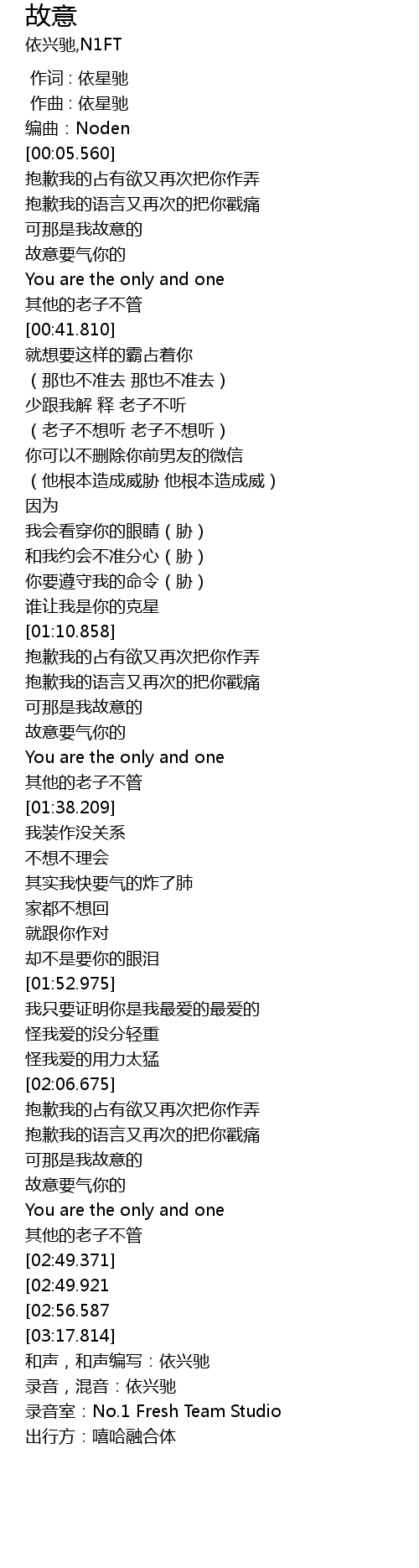 | [03:19.030] | 录音室:No.1 Fresh Team Studio |