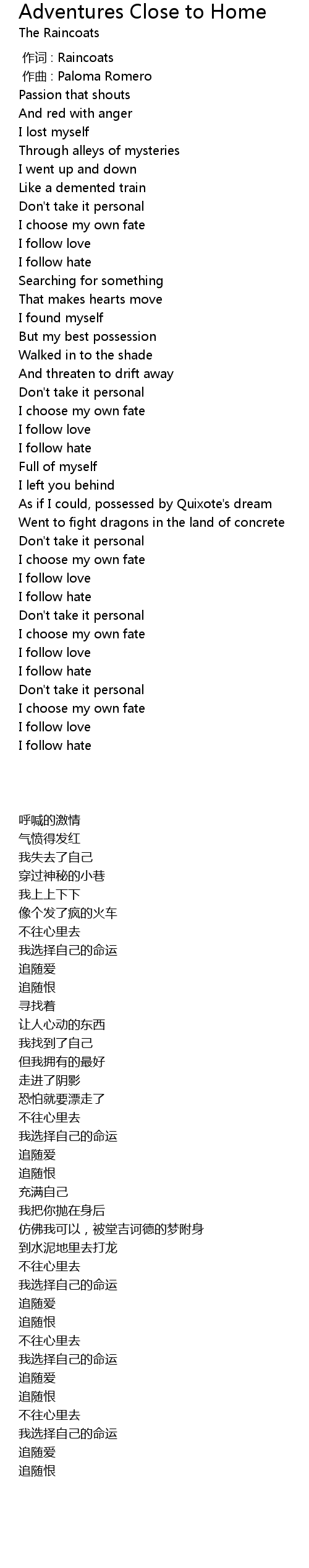 | [00:00.000] | 作词 : Raincoats |