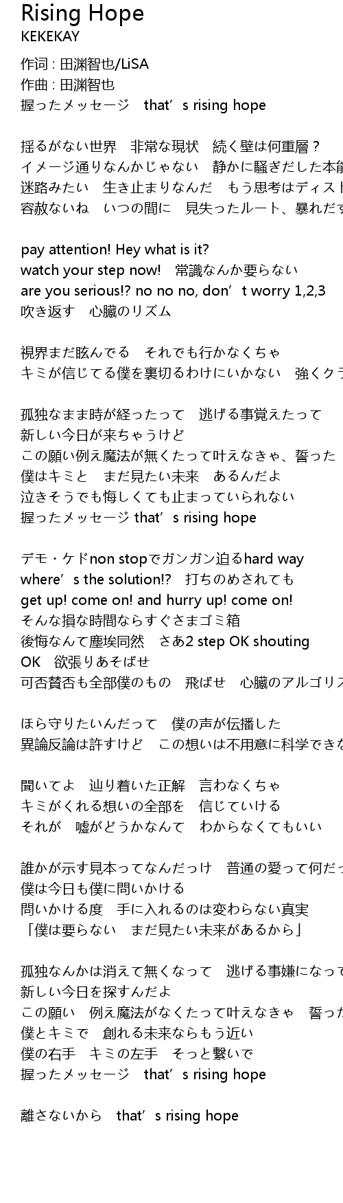 | 離さないから that’s rising hope |