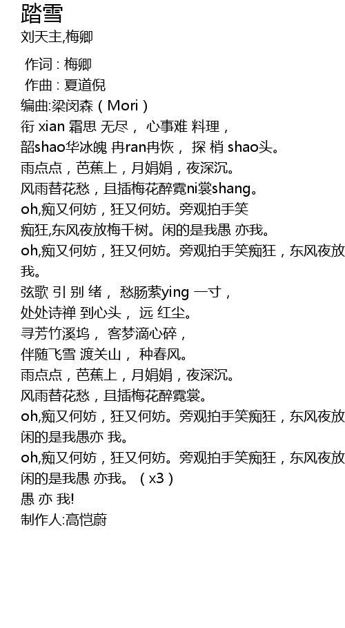| [00:00.00] | 编曲:梁闵森(Mori) |