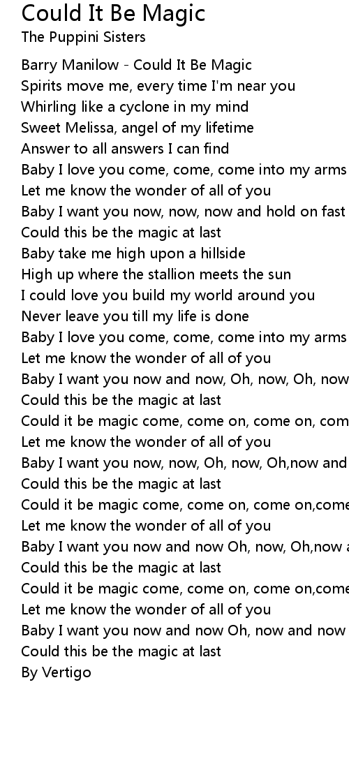 Could it be magic come, come on, come on, come, Oh,come into my eyes |