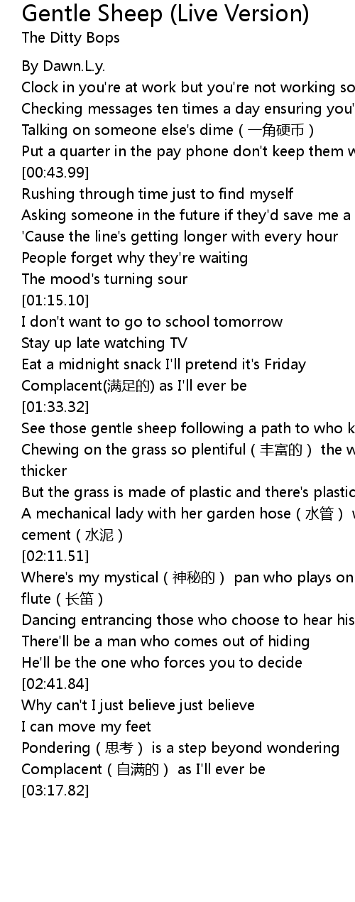 | [01:44.62] | See those gentle sheep following a path to who knows where |