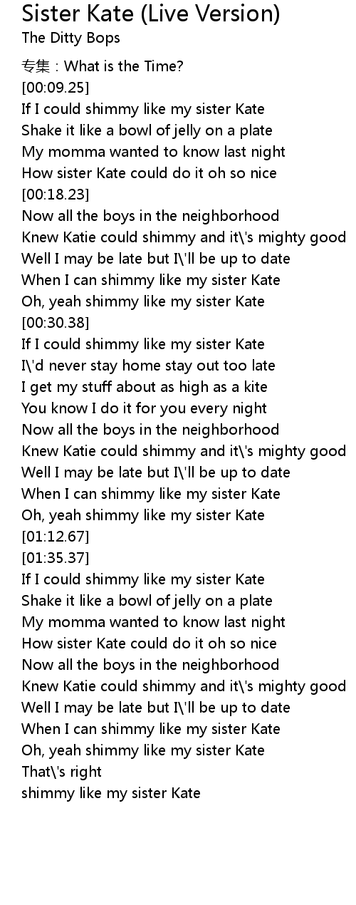 | [00:50.46] | If I could shimmy like my sister Kate |