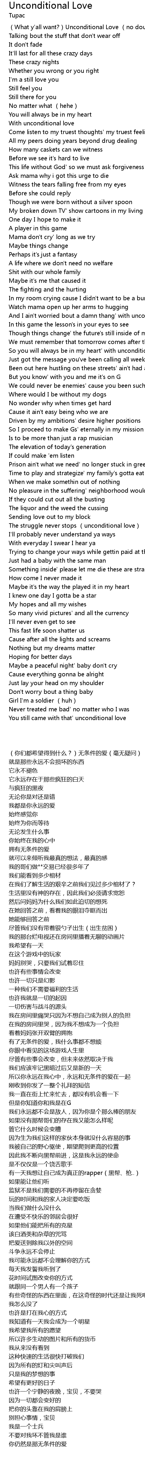 | [00:00.390] | (What y'all want?)Unconditional Love (no doubt) |