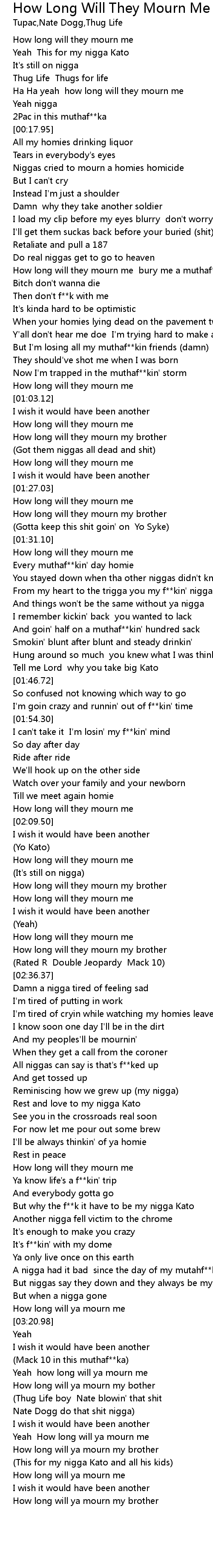 | [00:39.42] | How long will they mourn me bury me a muthaf**kin 'G' |