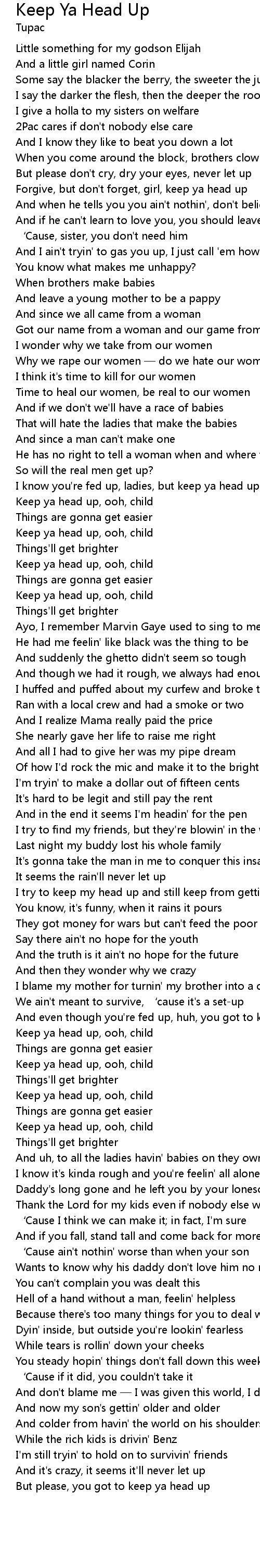 | [04:19.09] | But please, you got to keep ya head up |
