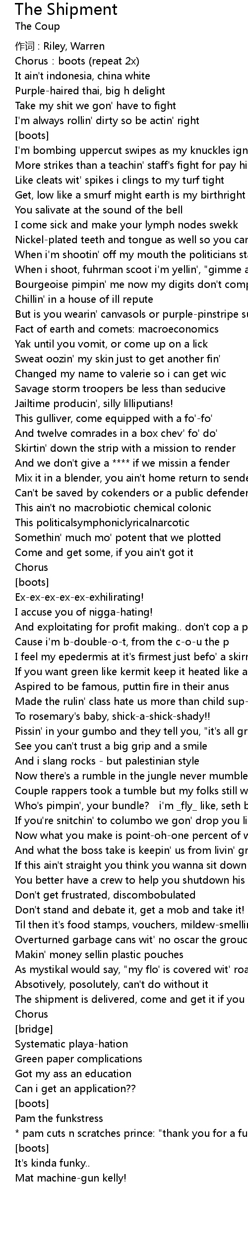 | When i shoot, fuhrman scoot i' m yellin', " gimme all the loot!" | |