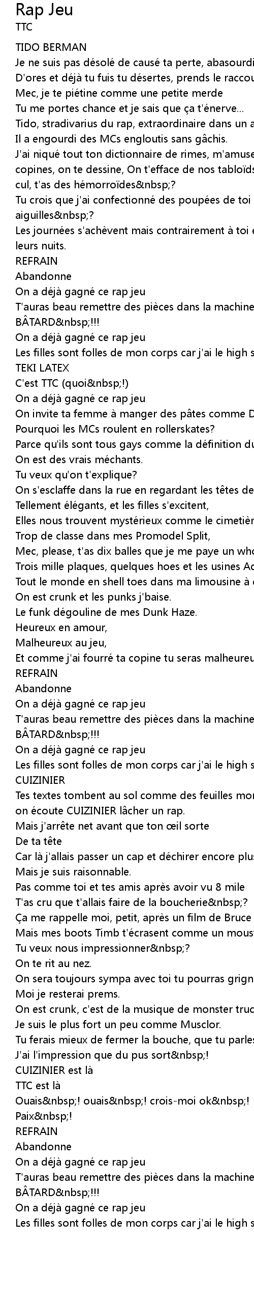 | Les filles sont folles de mon corps car j' ai le high score. | |