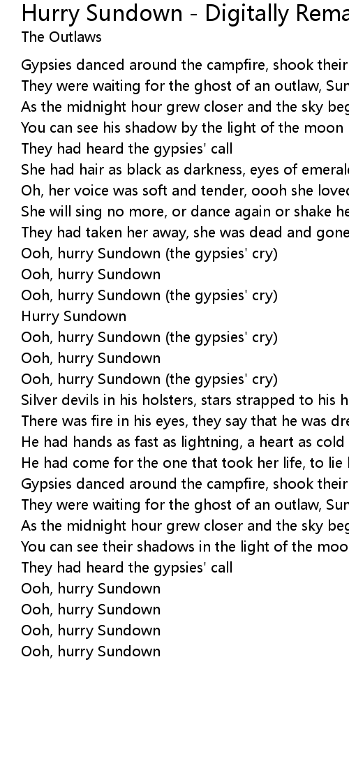 Ooh, hurry Sundown (the gypsies' cry) |