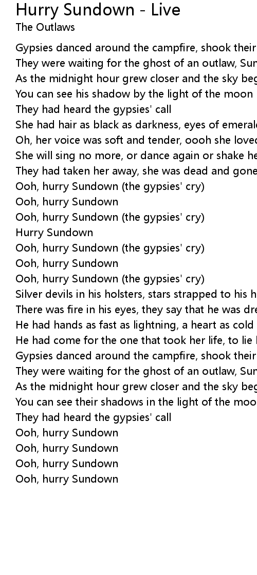 Ooh, hurry Sundown (the gypsies' cry) |