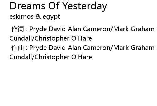 | [00:00.00-1] | 作词 : Pryde David Alan Cameron/Mark Graham Compton/John Cundall/Christopher O'Hare |