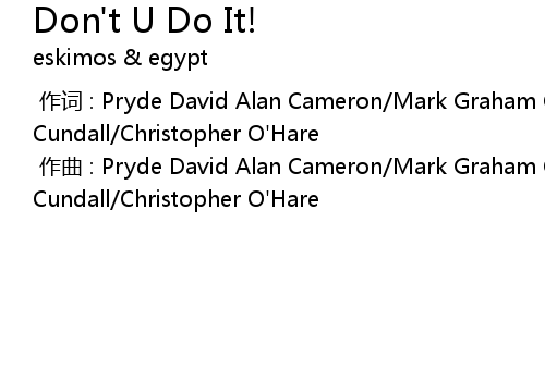 | [00:00.00-1] | 作词 : Pryde David Alan Cameron/Mark Graham Compton/John Cundall/Christopher O'Hare |