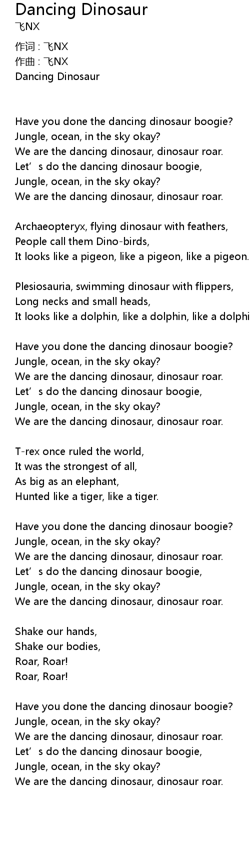 | Song | Dancing Dinosaur |