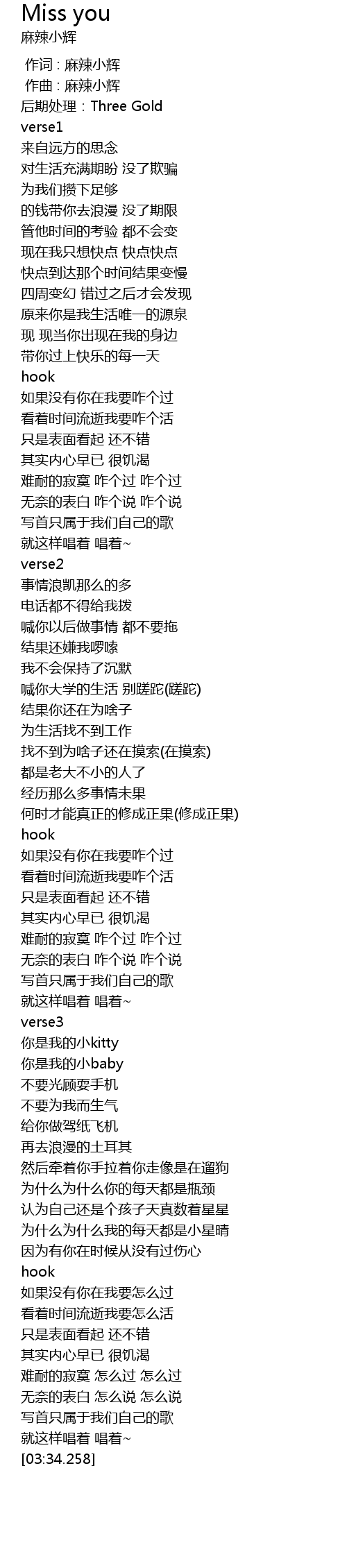 | [00:00.000] | 作词 : 麻辣小辉 |