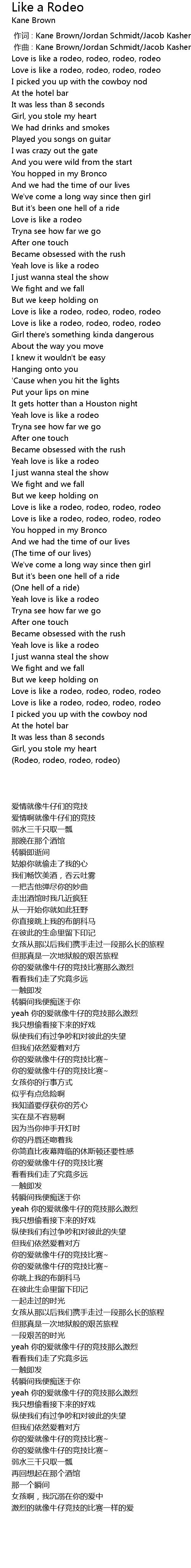 | [00:10.17] | Love is like a rodeo, rodeo, rodeo, rodeo |