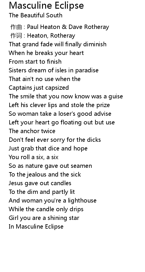 | [03:06.08] | In Masculine Eclipse |