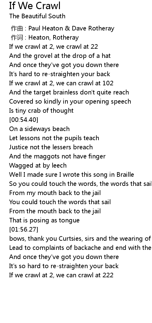 | [00:10.11] | If we crawl at 2, we crawl at 22 |
