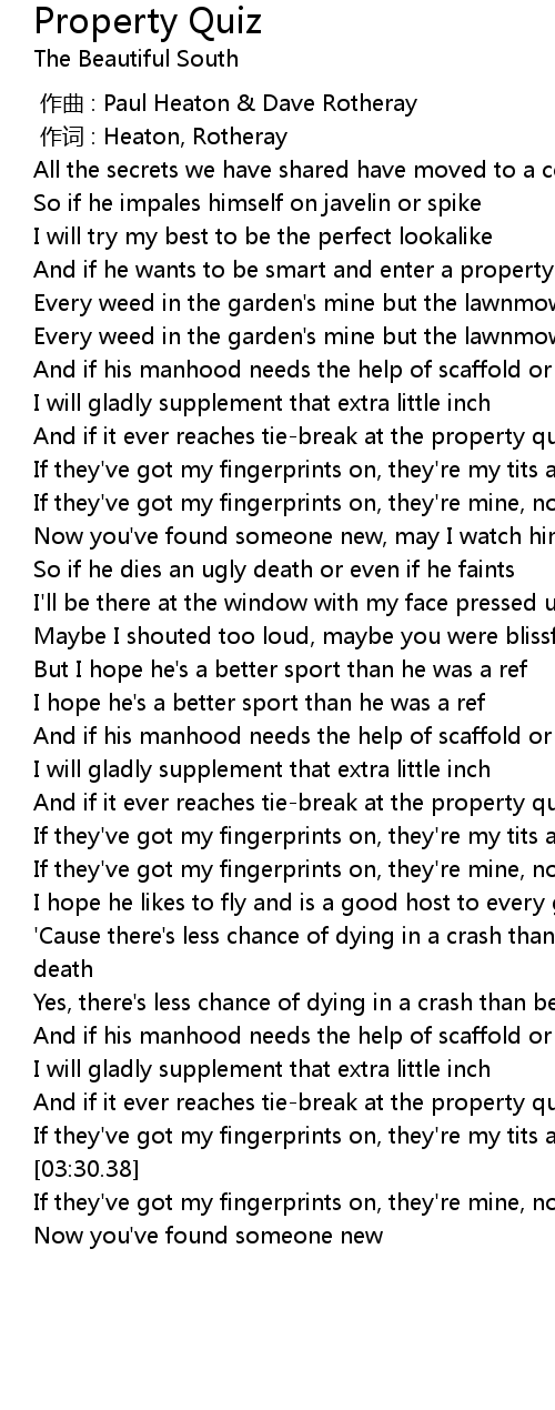 | [01:04.31] | And if it ever reaches tie-break at the property quiz |
