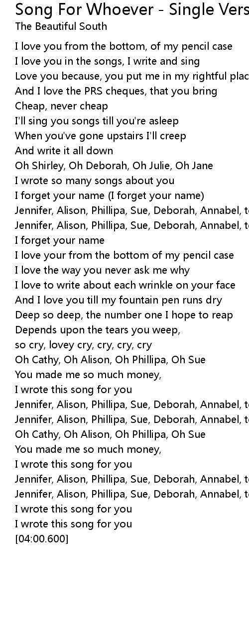 Oh Shirley, Oh Deborah, Oh Julie, Oh Jane |