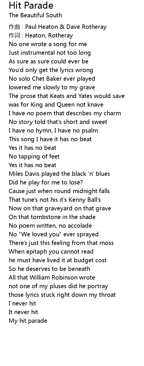 | zuò qǔ : Paul Heaton Dave Rotheray | |