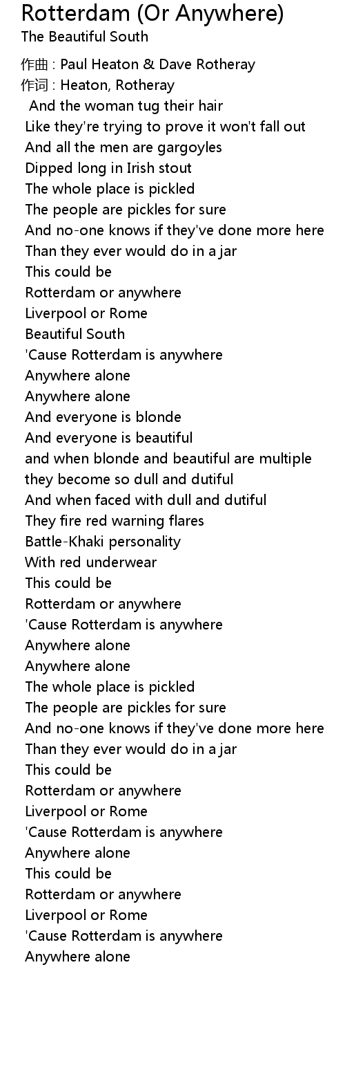 | ' Cause Rotterdam is anywhere | |
