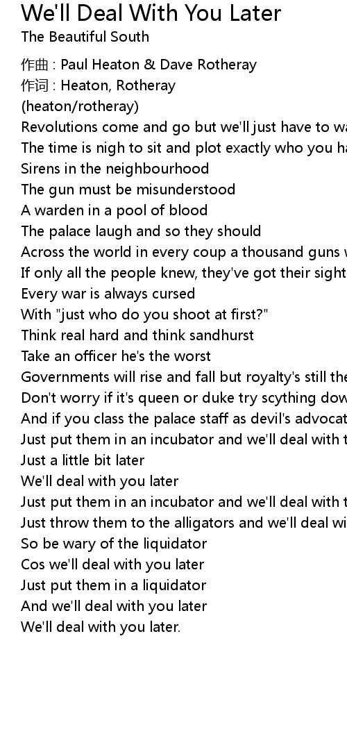 | Cos we' ll deal with you later | |