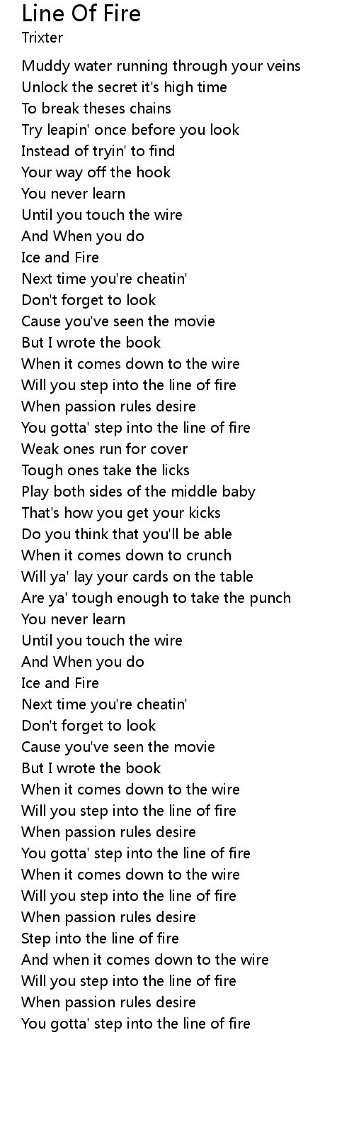 | Will you step into the line of fire | |