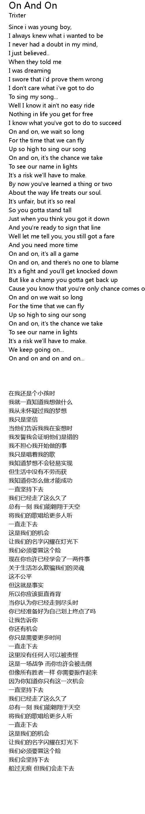 | On and on, it's the chance we take | |
