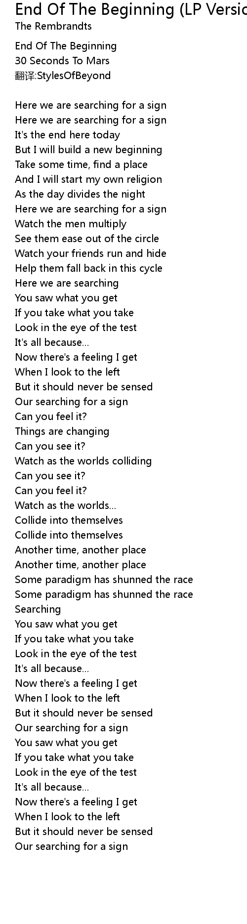 | End Of The Beginning | |