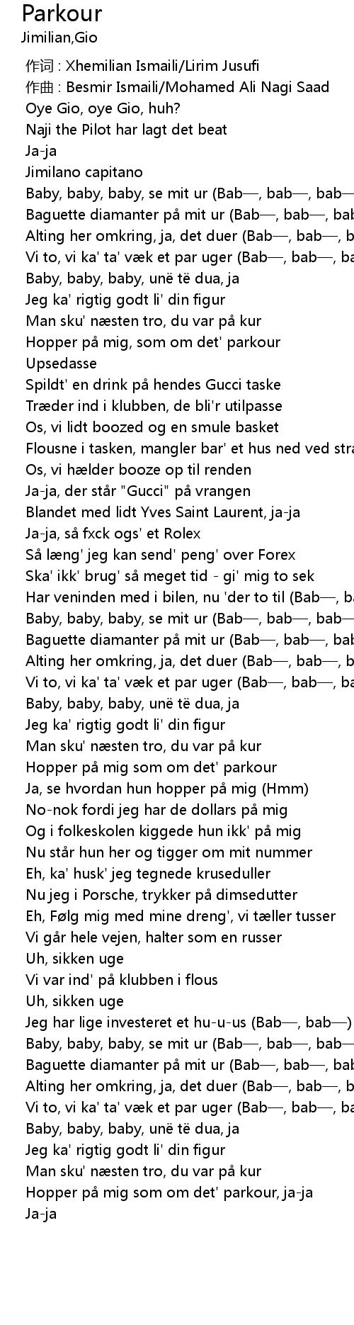 | [02:09.741] | Hopper på mig som om det' parkour, ja-ja |