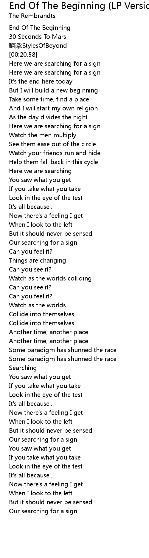 | [00:19.21] | 翻译:StylesOfBeyond |