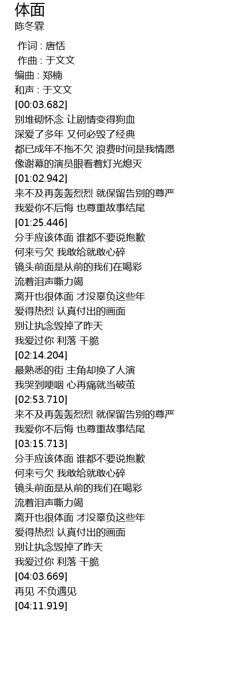| [03:19.214] | 分手应该体面 谁都不要说抱歉 |