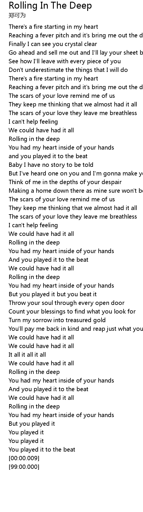 | [03:21.36] | Rolling in the deep |