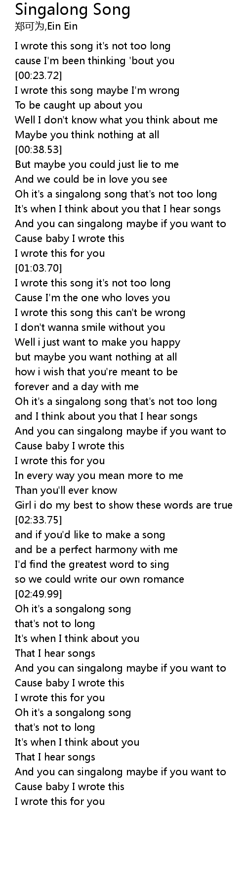 | [02:03.95] | Oh it's a singalong song that's not too long |