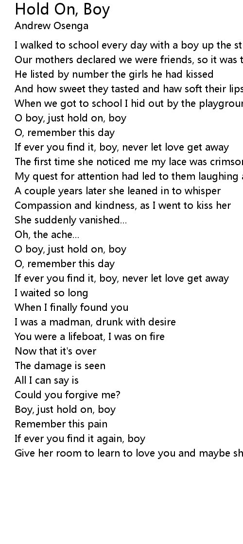 O boy, just hold on, boy |