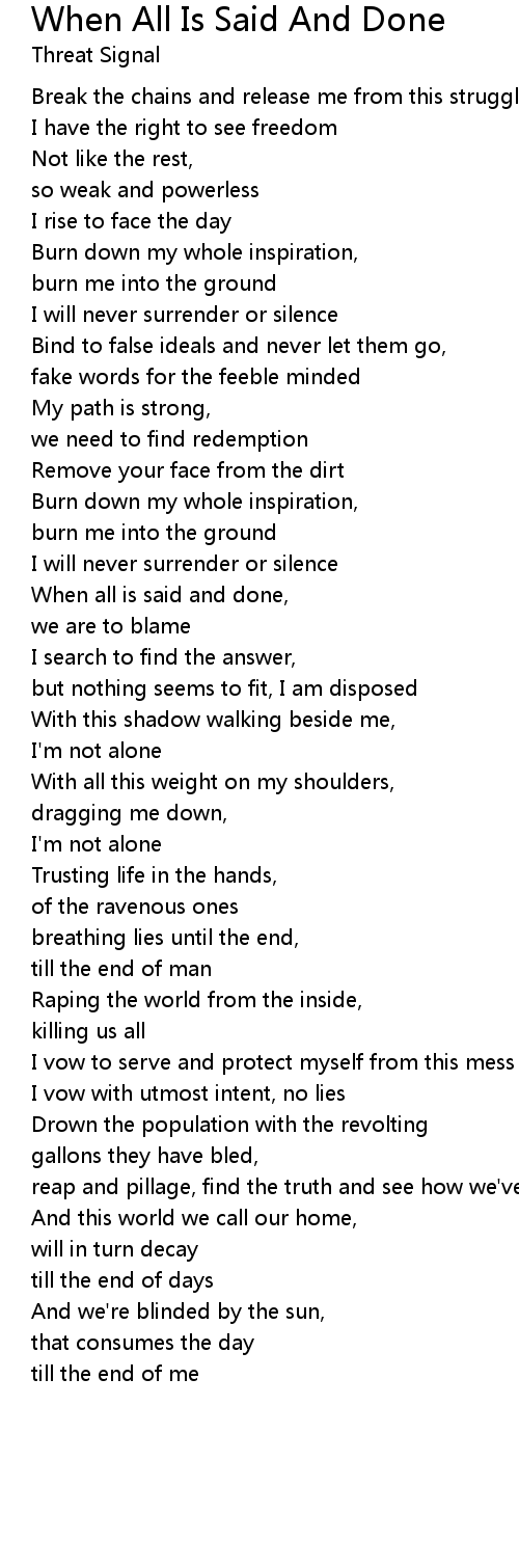 When all is said and done, |