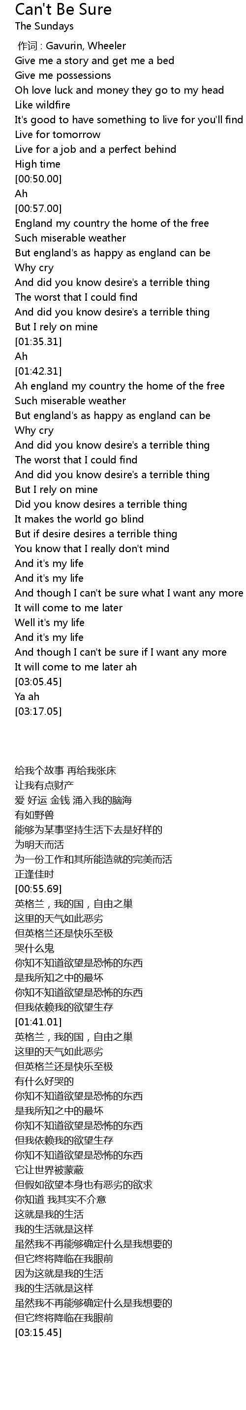 | [02:56.14] | And though I can't be sure if I want any more |
