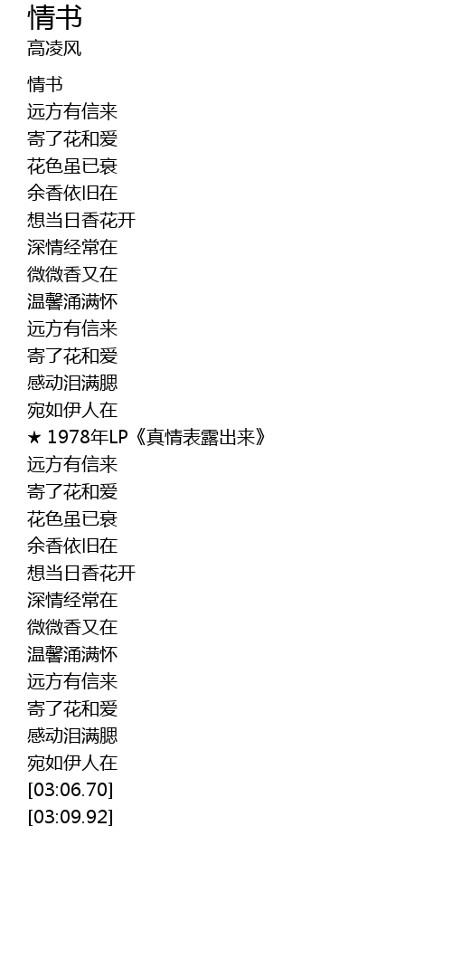 | [01:35.07] | ★ 1978年LP《真情表露出来》 |