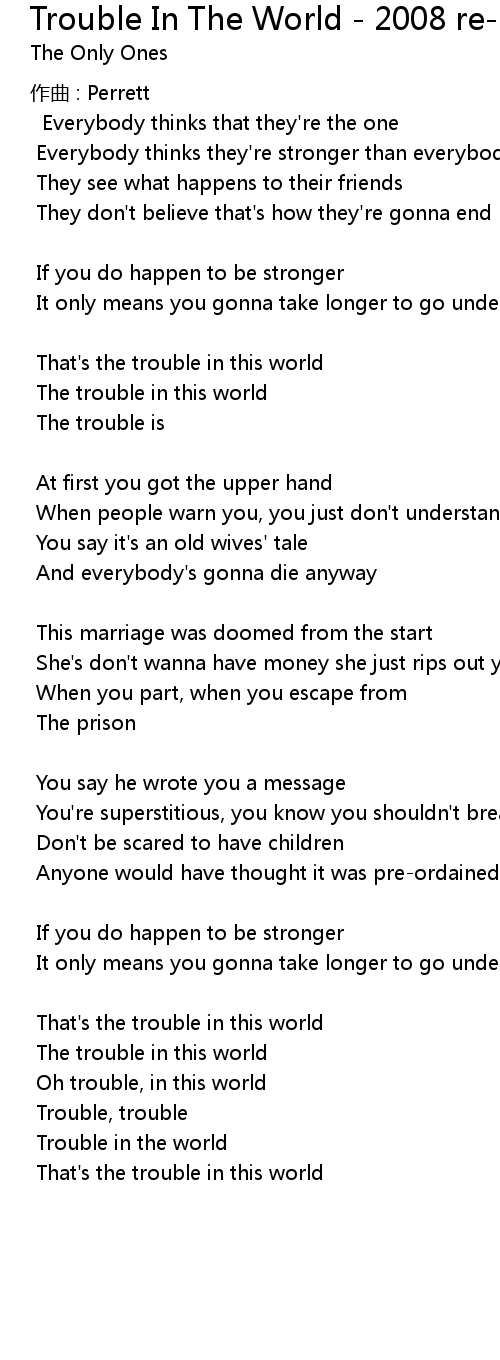 | Oh trouble, in this world | |