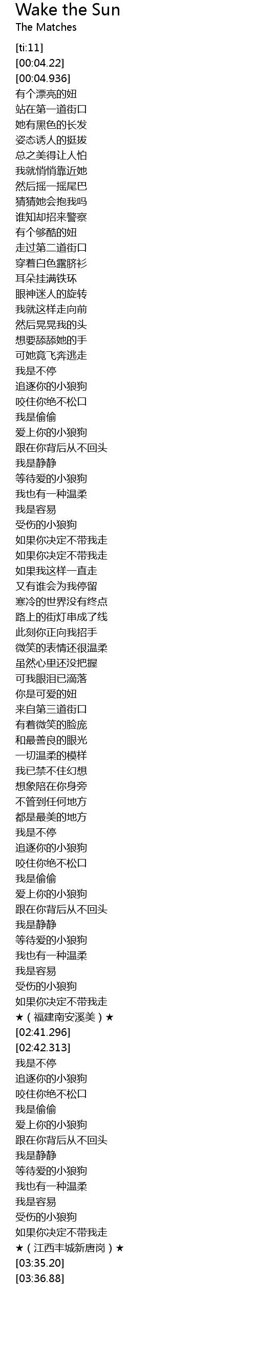 | [03:15.627] | děng dài ài de xiǎo láng gǒu |