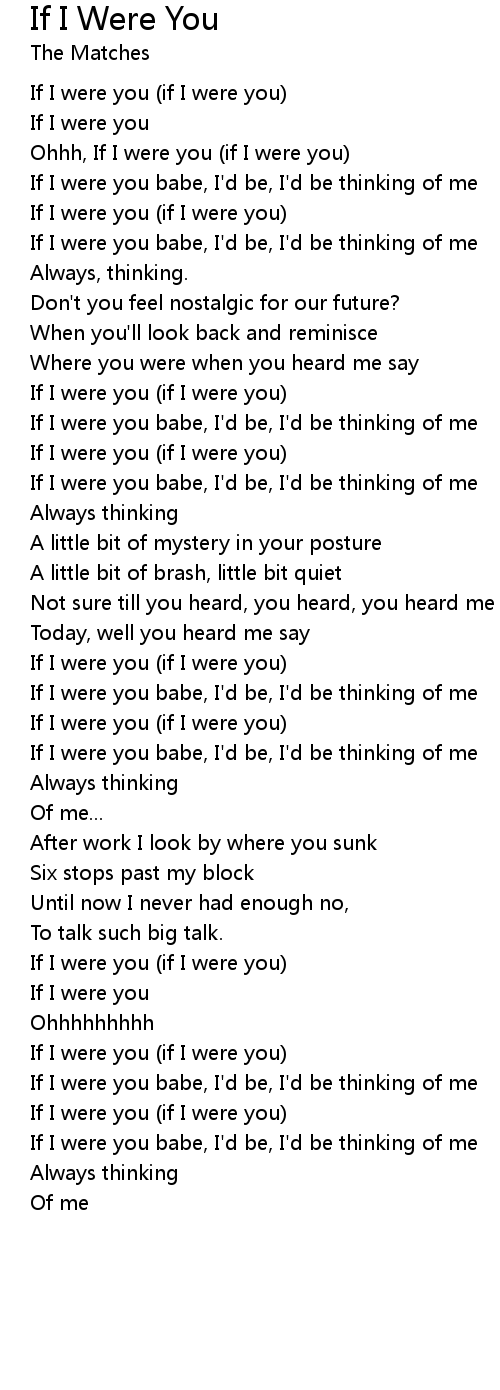 Ohhh, If I were you (if I were you) |